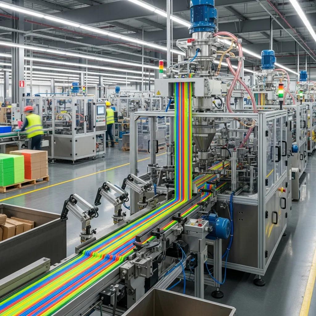 | High-Volume Plastic Extrusion Line | 250–500 pcs/min; 25–60 kW | Large floor area and power | Premium/high investment |